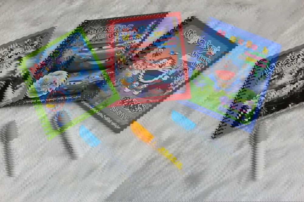 كتاب التلوين السحرى 🎨 Magic book 👈 ابنك 👦 أو بنتك 👧 هيلونوا لآلاف المرات مع ماجيك بوك ⬅️ كتاب سلك بأوراق كرتون مقوى ⬅️ ( 4 رسومات) للتلويين ومعاه القلم السحرى يتم ملؤه بالمياه 💧💧 ويلون الطفل فتظهر الرسومات 🦁🏘️ 🐥🌺💐بألوان مختلفة وزاهية